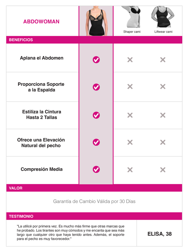 Nuestra camiseta AbdoWoman fue creada para brindarte compresión y remodelación abdominal. Cuenta con un refuerzo cruzado en la espalda para proteger la columna y relajar los músculos dorsales. Es tan ligero y cómodo que es ideal para el uso diario.