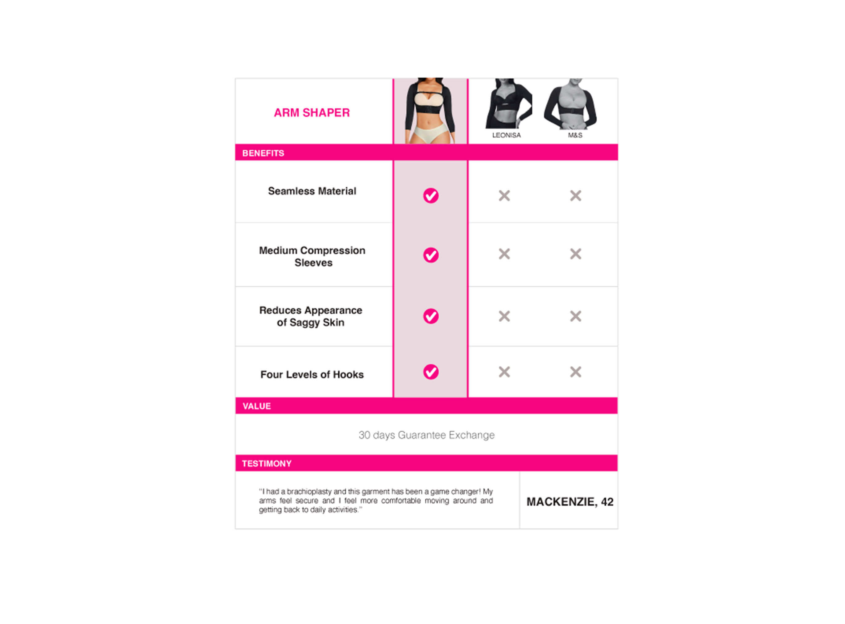 Experimenta una transformación definitiva del cuerpo superior con nuestra prenda moldeadora de brazos. Creada para brindar soporte a los brazos y al cuerpo superior, tonifica eficazmente y reduce la apariencia de la piel flácida. Pensando en la comodidad, su diseño sin costuras garantiza un ajuste discreto bajo cualquier atuendo, ofreciendo un uso versátil para cualquier ocasión. Aprovecha la confianza de un cuerpo superior más definido y esculpido con esta prenda revolucionaria.